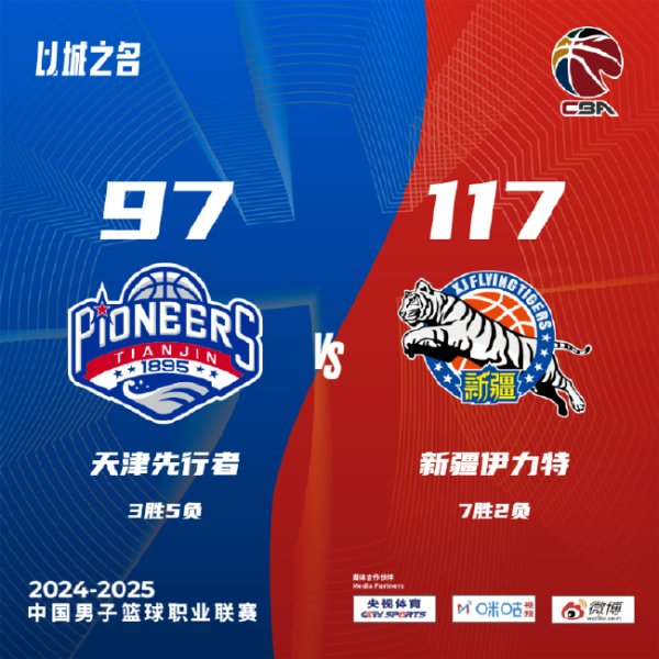 北京时间11月1日消息,2024-2025赛季CBA常规赛第9轮,天津男篮97-117新疆男篮。